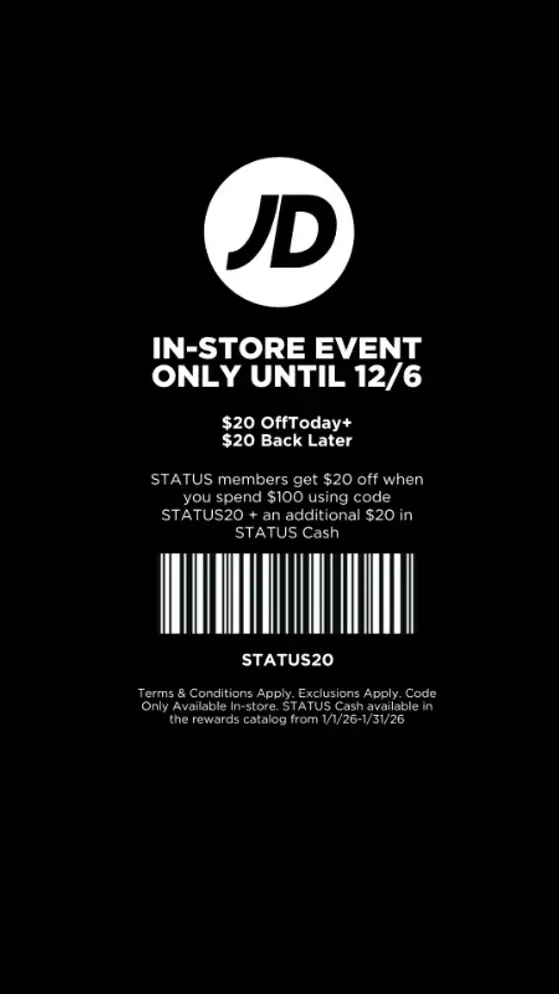 STATUS members get $20 off when you spend $100 using code STATUS20 + an additional $20 in STATUS Cash.