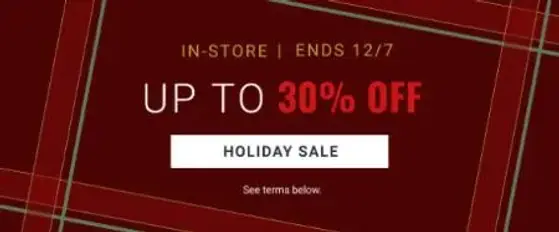 Don't miss out! Shop in store and get up to 30% off on holiday sale.